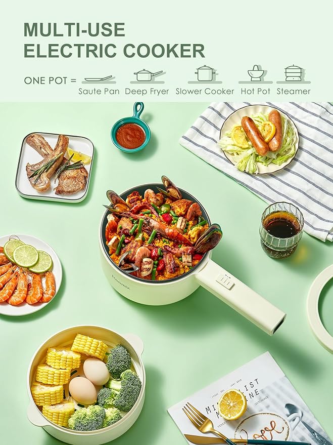 📦 INCLUYE: ✔️ Olla eléctrica con recubrimiento antiadherente ✔️ Vaporizador de grado alimenticio ✔️ Cable de alimentación ✔️ Manual de usuario