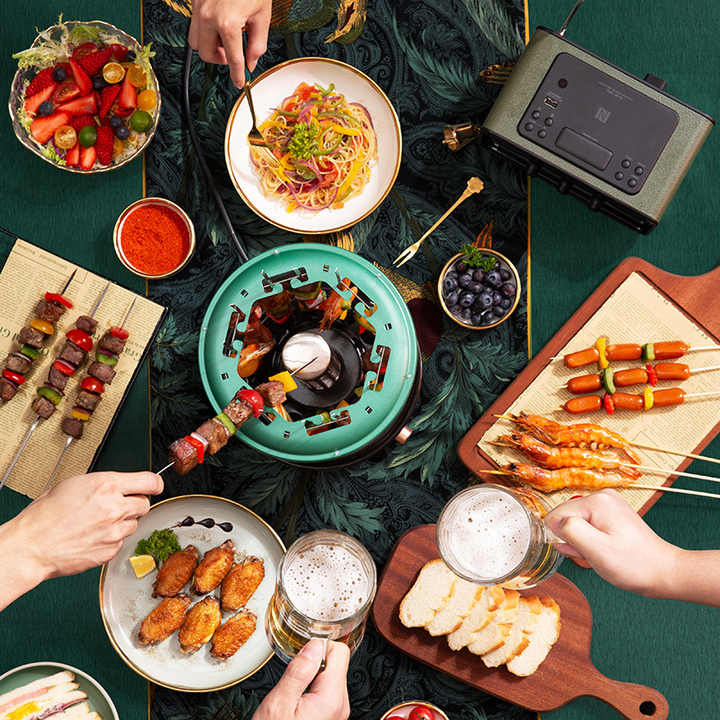 Con la Parrilla de Barbacoa Automática Giratoria, puedes preparar carne, brochetas y verduras de manera uniforme sin humo y sin ensuciar. Su rotación automática garantiza una cocción homogénea, mientras que su diseño eléctrico y sin humo la hace ideal para interiores.