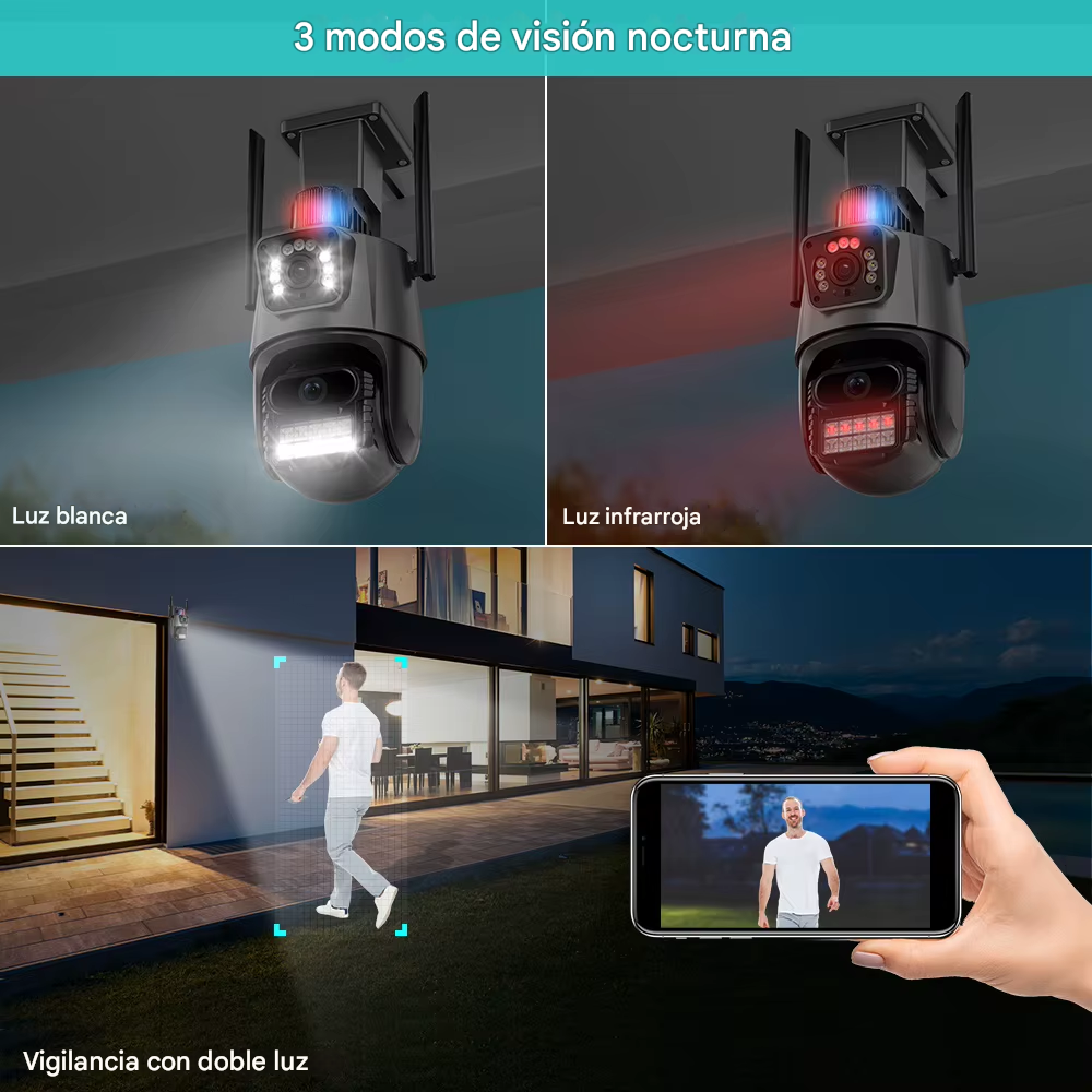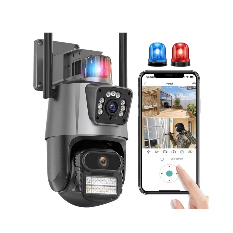 ✅ ¡Soluciona todo eso con una sola cámara! Con la Cámara Doble Lente con Sirena, tendrás visión completa, grabación clara día y noche, detección automática y sirena integrada que ahuyenta intrusos.