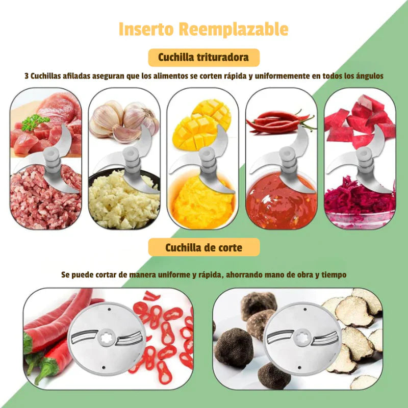 ✅ Corta automáticamente las verduras: Con el tendrás un cortador de verduras eléctrico y una picadora de carne eléctrica.